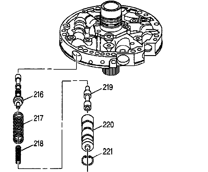 12. Install the pressure regulator isolator spring (218) and the pressure regulator valve spring (217).