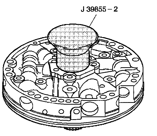 4. Use J 36850 or equivalent to retain the washer to the pump.