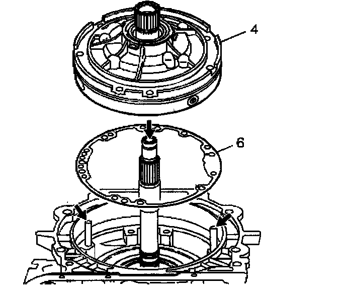 7. Install the oil pump assembly (4) into the case and align all holes properly,