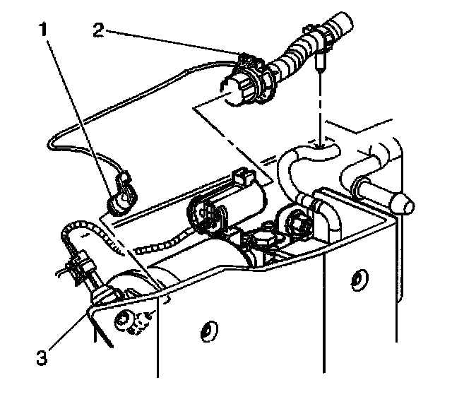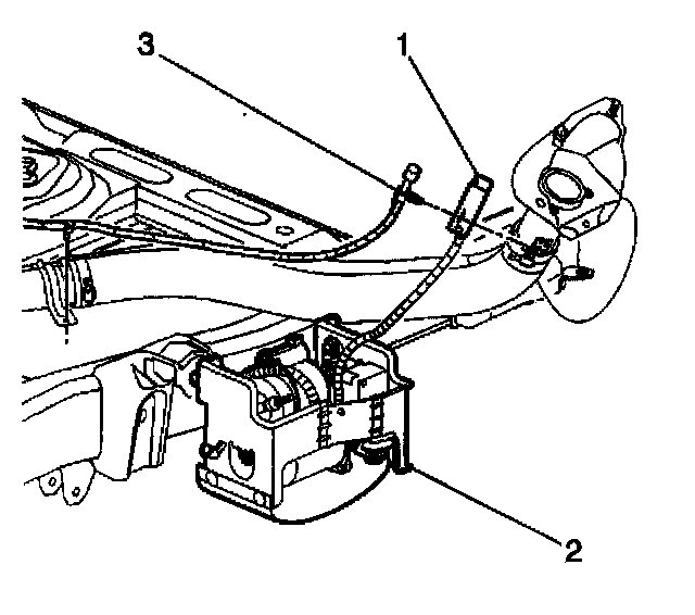 4. Remove the air inlet and hose (1) from the fuel filler neck bracket.
