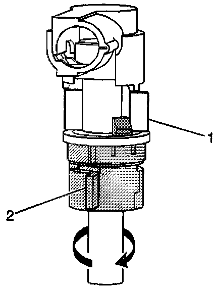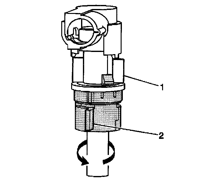 4. Grasp the connector lock tabs (1,2). Rotate the connector tabs counterclockwise until the connector is unlocked.