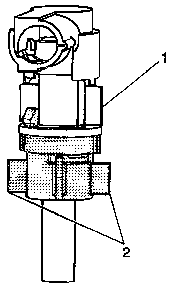 8. Remove the upper insulator (1). Do not discard the plastic pilot ring (2).
