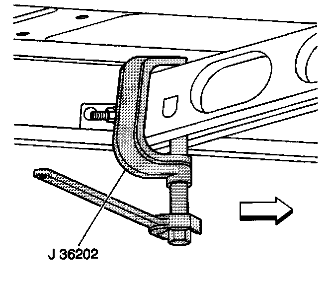 6. Install the J 36202 to the adjustment arm and the crossmember.