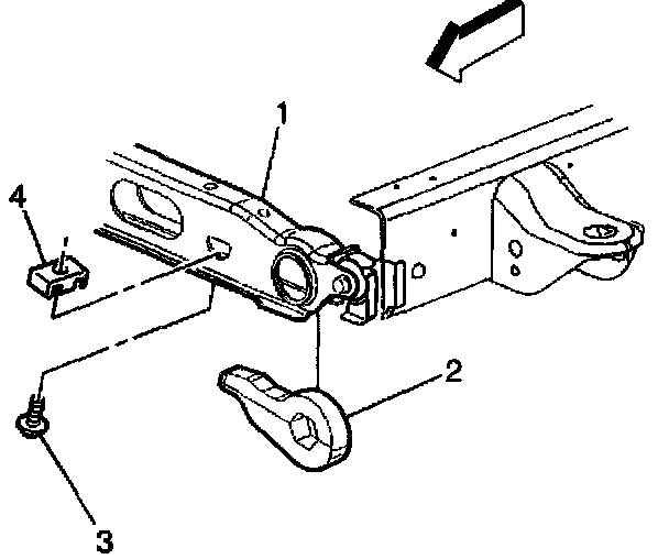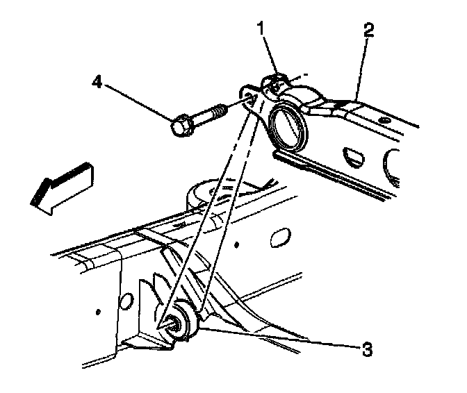 3. Install the torsion bar crossmember bolts (1) to the weld nuts (4).