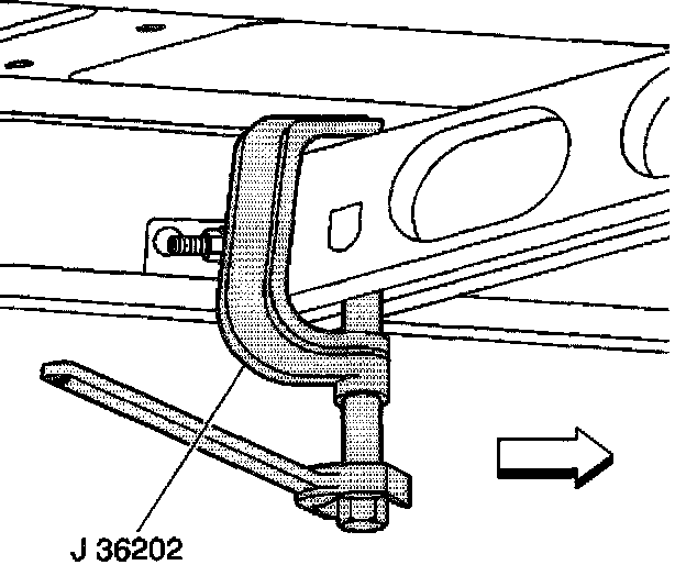2. Install the J 36202 to the adjustment arm and the crossmember.