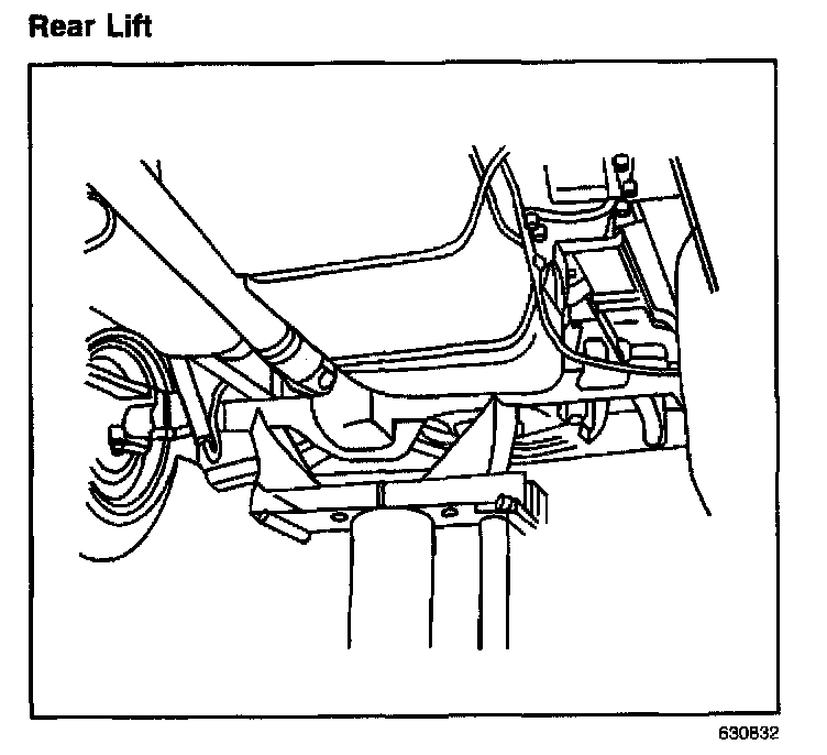 Position the (suspension contact) rear lift under the axle housing tubes on each side of the differential.