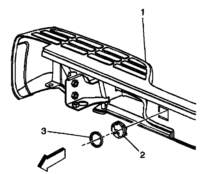 4. Remove the spare tire wheel hoist guide retaining clips from the bumper.