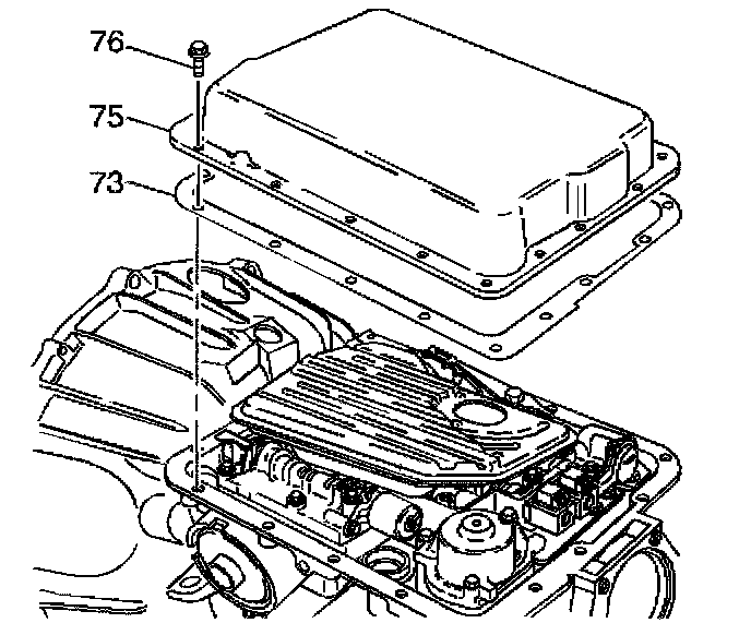 1. Place the transmission oil pan gasket (73) on the case.