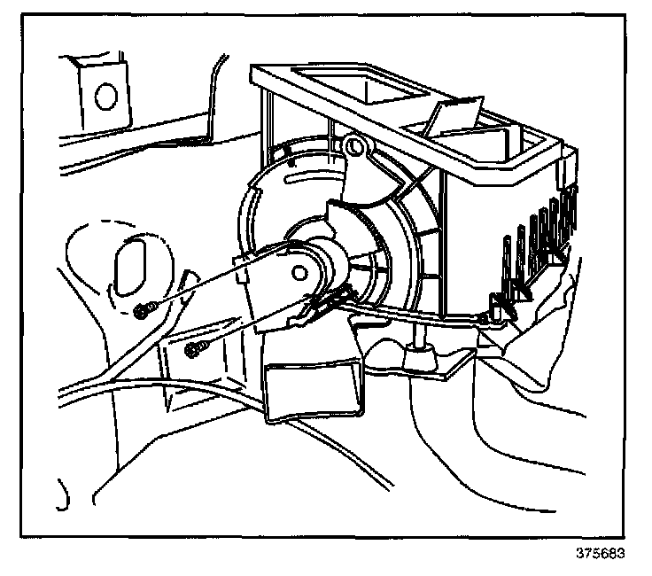 - Line up the heater/defroster lever with the mode actuator cam slot.