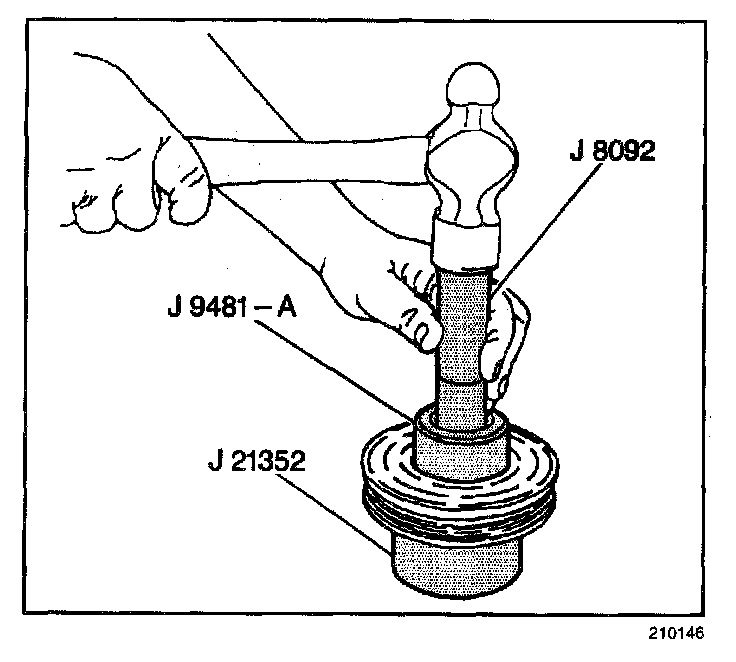 1. Place the pulley rotor on the J 21352-A in order to fully support the rotor hub during bearing installation.