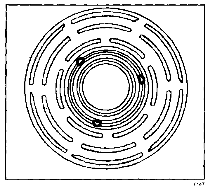 7. Stake 3 locations on the bearing race 120 degrees apart as shown.