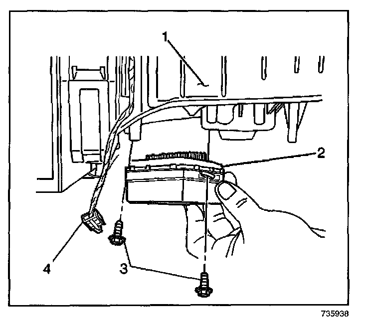 3. Connect the electrical connector (4) to the blower motor control processor (2).