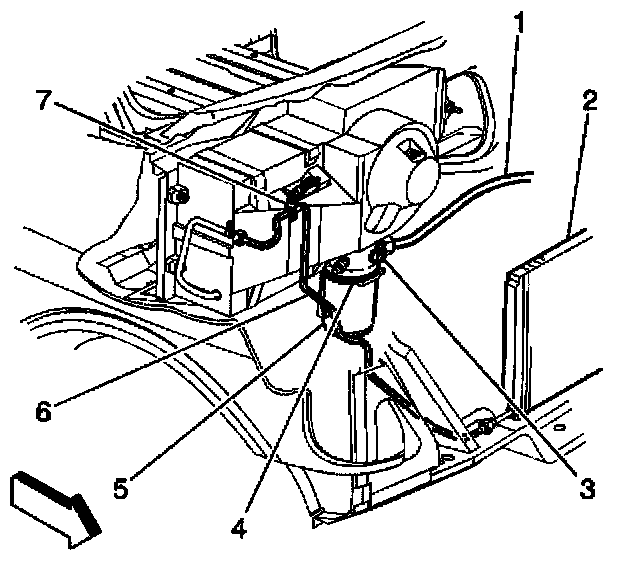 This valve is located between in the compressor and condenser hose, between the compressor and the expansion (orifice) tube.
