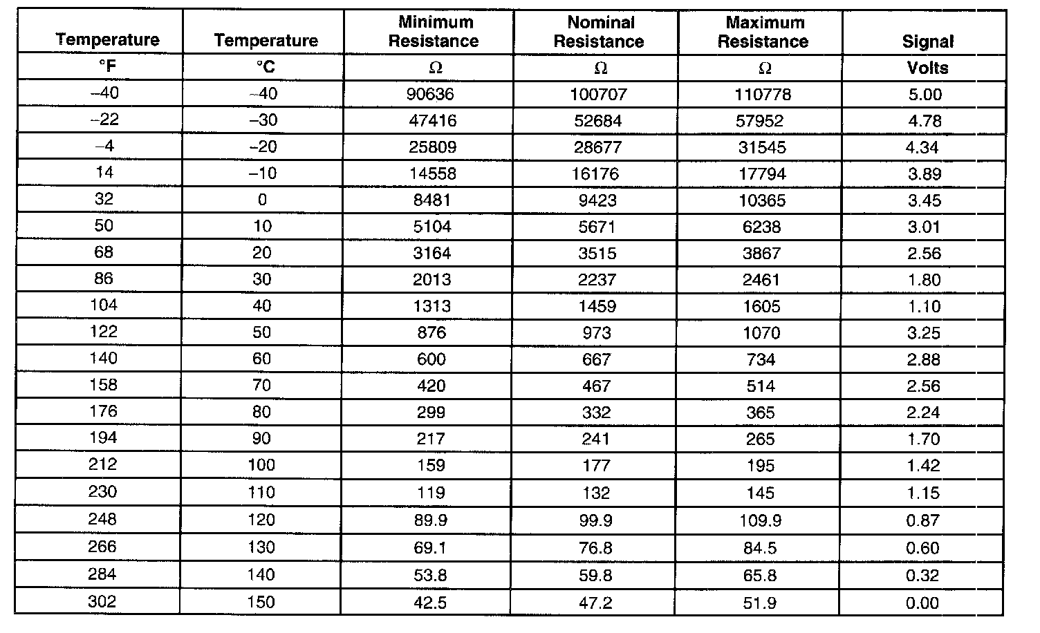 Transmission Fluid Temperature (TFT) Sensor Specifications