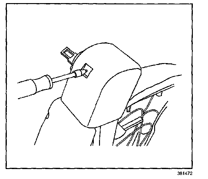 IMPORTANT: Do not remove the seat back cover from the head restraint retainers.