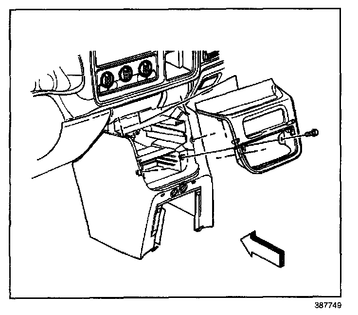 2. Protect the console extension from damage then carefully use a small prying device to push in the tabs underneath the trim bezel securing the top of the trim bezel.