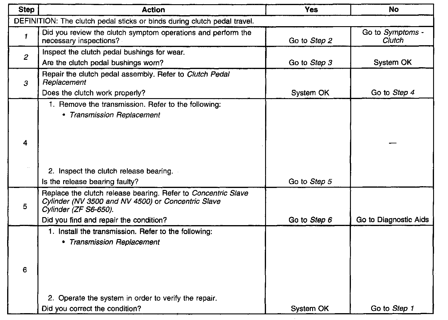When the clutch pedal sticks or binds during clutch pedal travel there might be faulty bushings or a worn or damaged release bearing can be the cause for the clutch pedal to bind or stick during clutch pedal travel.