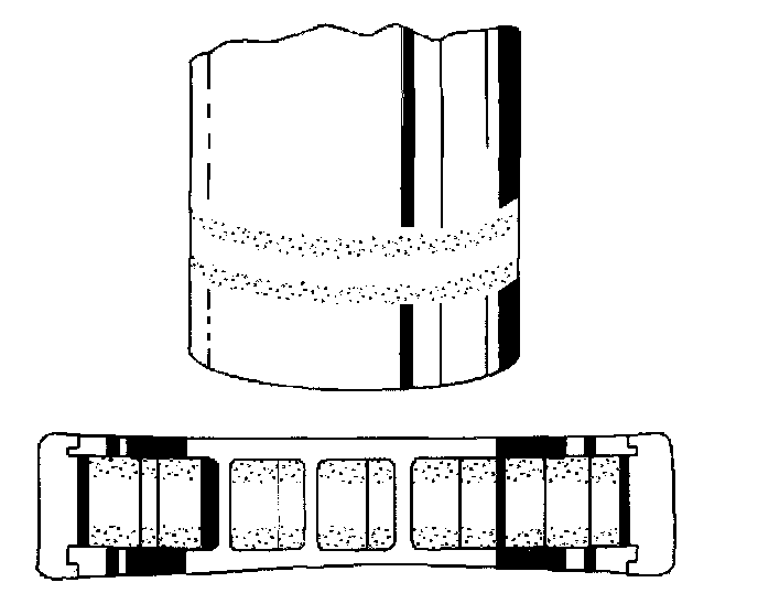 Flaking of surface metal results from fatigue, usually at both edges of the race and rollers. Replace the bearing. Clean all related parts. Replace the shaft if damaged.