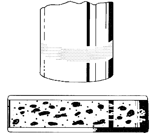 Smearing of metal due to slippage. Slippage can be caused by poor fits, lack of lubrication, overheating, overloads or handling damage. Replace the bearing. Clean all the related parts. Check for proper fit and lubrication.