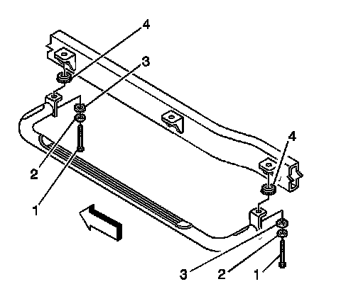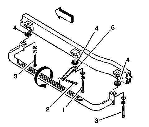 7. Remove the lower body-mount cushion assemblies (4), front and rear, from the vehicle.