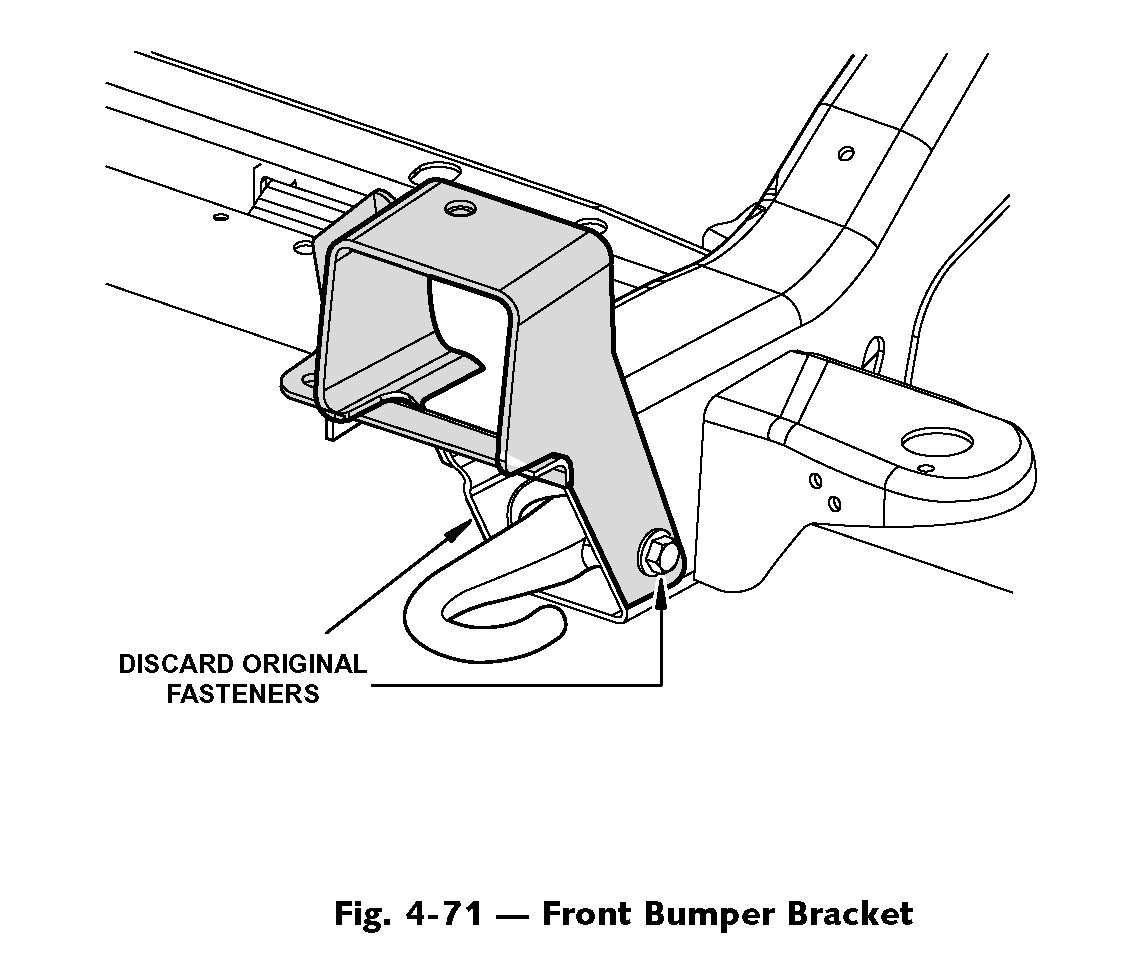 IMPORTANT: If vehicle is equipped with tow hooks, discard original fasteners (Fig. 4-71).