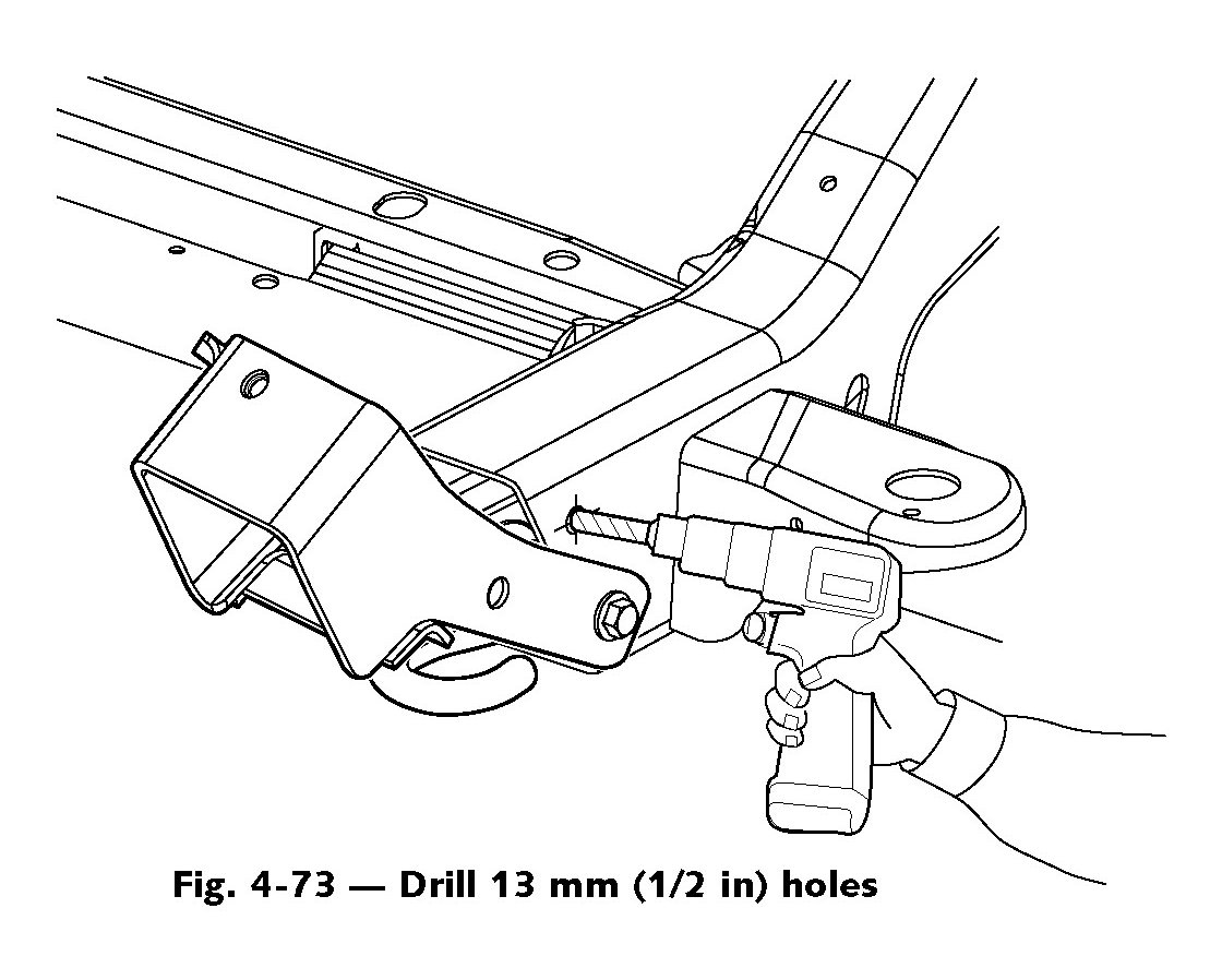 6. Rotate bracket forward and drill 13 mm (1/2 in) holes in frame at upper bolt locations (Fig. 4-73).