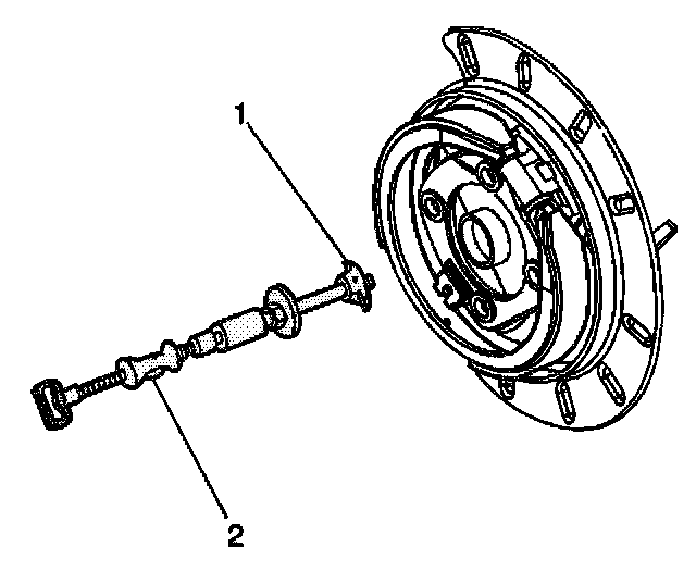 5. Remove the axle shaft seal and the bearing from the axle housing using the J 44685 (8.6 inch axle) (1) and the J 2619-01 (2).