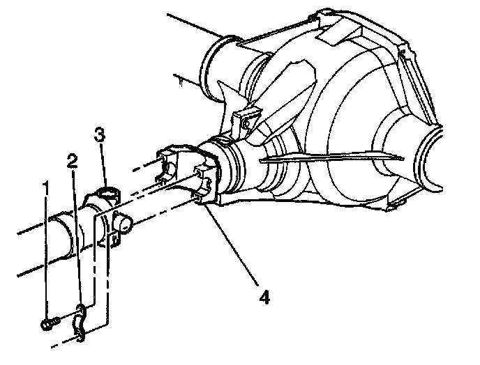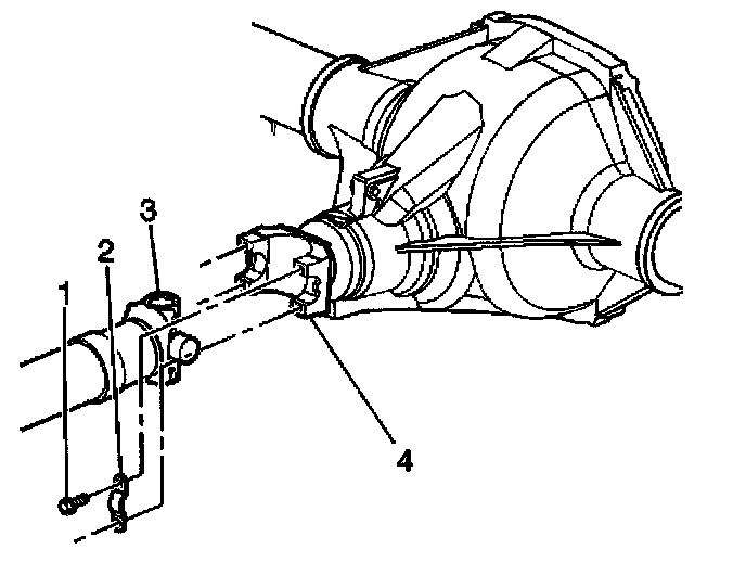 6. Reference mark the rear propeller shaft (3) to the rear axle pinion yoke (4).