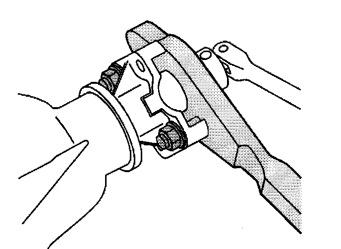 11. Install the propeller shaft yoke retaining clamps and the bolts.