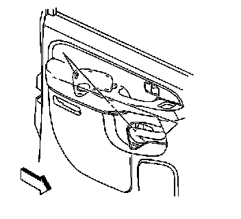 1. Insert a flat-bladed tool between the door handle bezel and the trim panel in order to release the door handle bezel tab retainers.