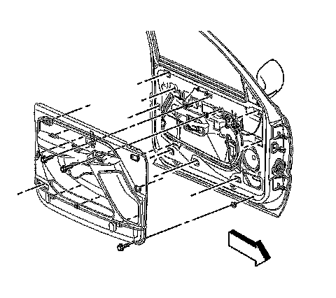 8. Remove the trim panel from the door, carefully sliding the trim panel up to release the retainers from the door.