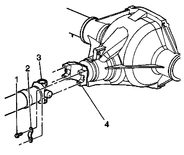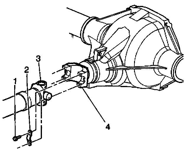 4. Reference mark the rear propeller shaft (3) to the rear axle pinion yoke (4).