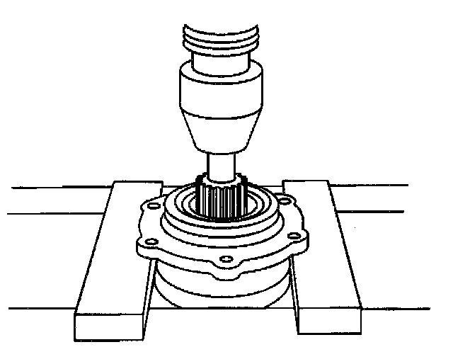 Notice: Do not hammer the pinion flange/yoke onto the pinion shaft. Pinion components may be damaged if the pinion flange/yoke is hammered onto the pinion shaft.
