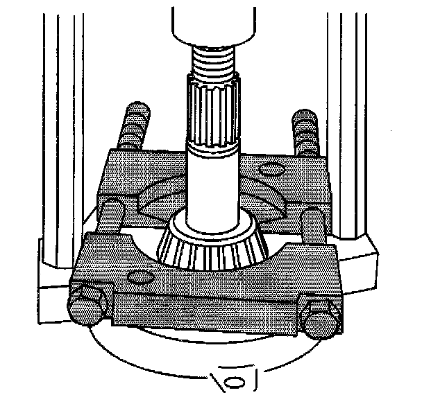 22. Remove the inner pinion bearing from the pinion using the J 22912-01 and a hydraulic press.