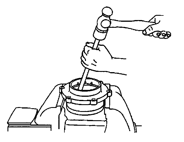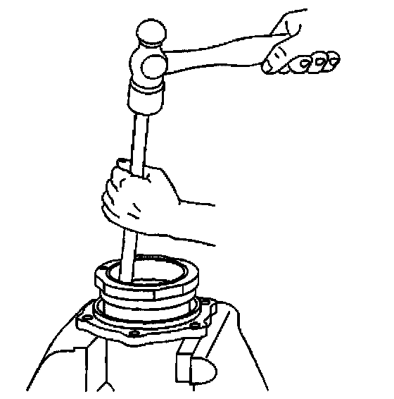 23. Remove the outer pinion bearing cup using a hammer and a brass drift in the slots provided.