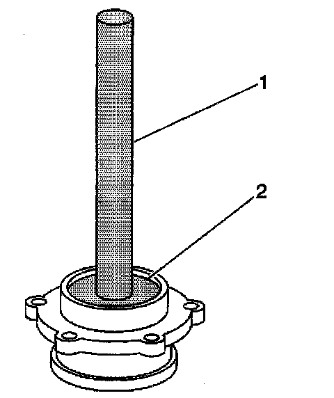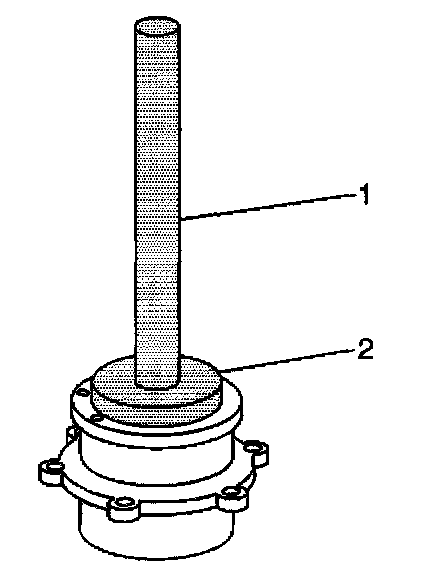 2. Install the outer pinion bearing cup into the pinion gear bearing retainer using the J 8608 (2) and the J 8092 (1).