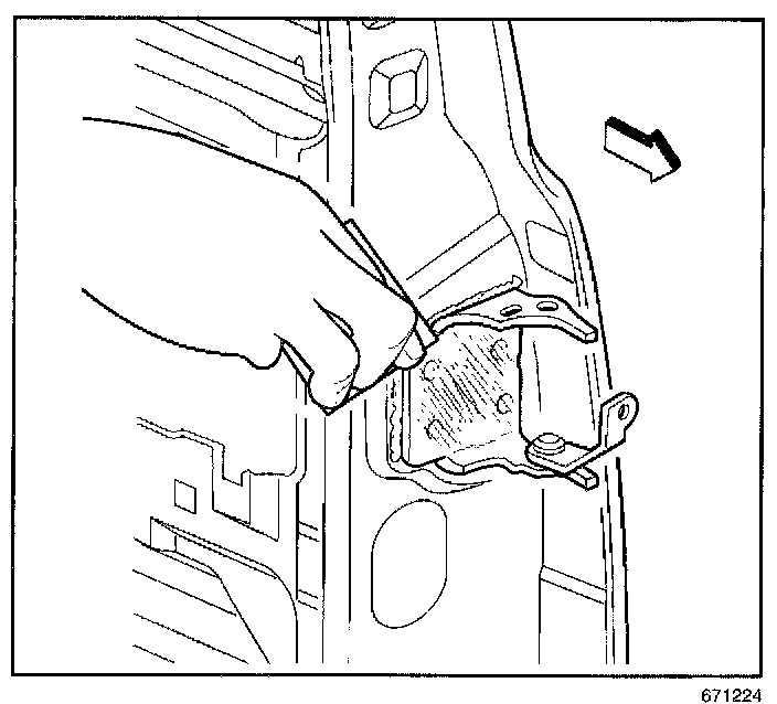 2. Remove any excess sealer surrounding the existing hinge and scribe the location of the hinge on the hinge pillar.