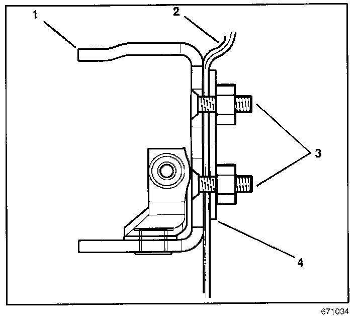 10. Align the hinge (1) and the backing plate (4) with the holes in the door (2) and install the bolts (3).