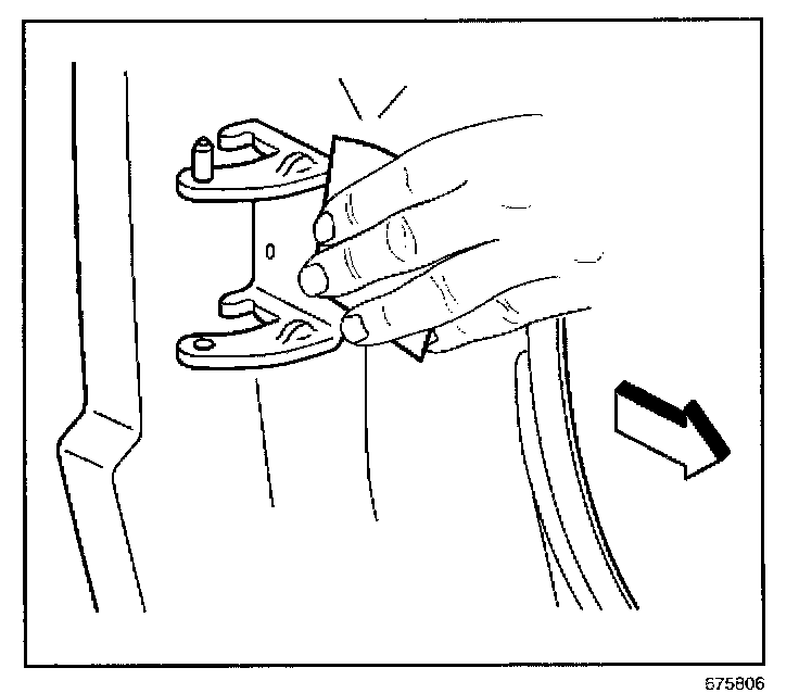 7. Feed fish wire GM P/N 15017229 through the hinge, the hinge pillar and out the conduit hole in the pillar.