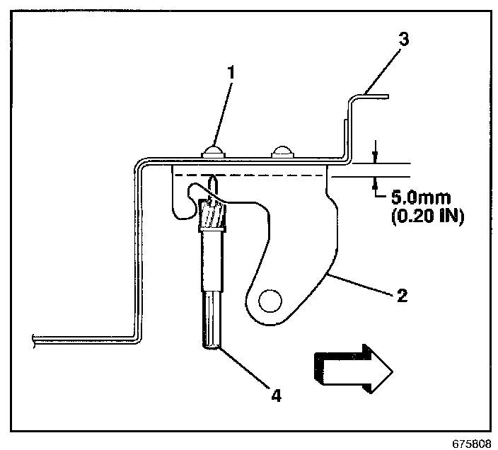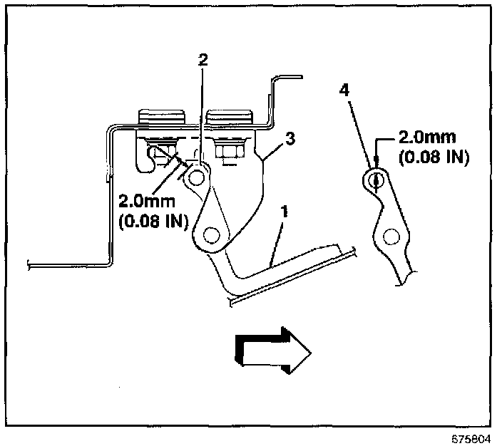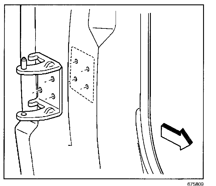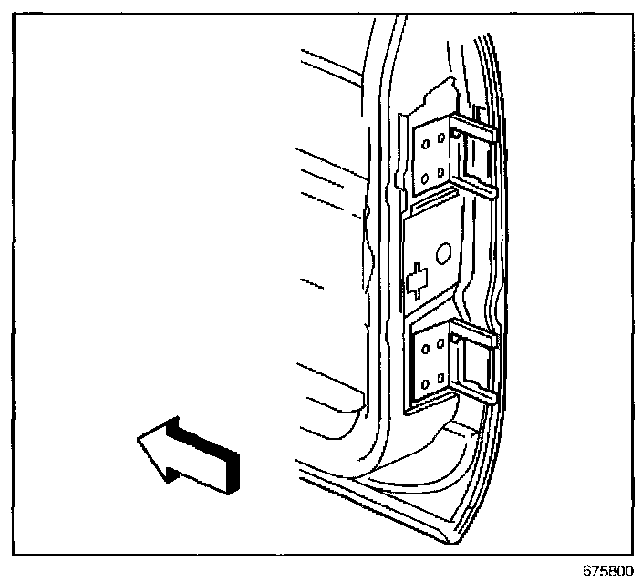 ^ Hinge extensions must maintain a wall thickness of 2 mm between the end of the extensions and the body side hinge nuts (3).