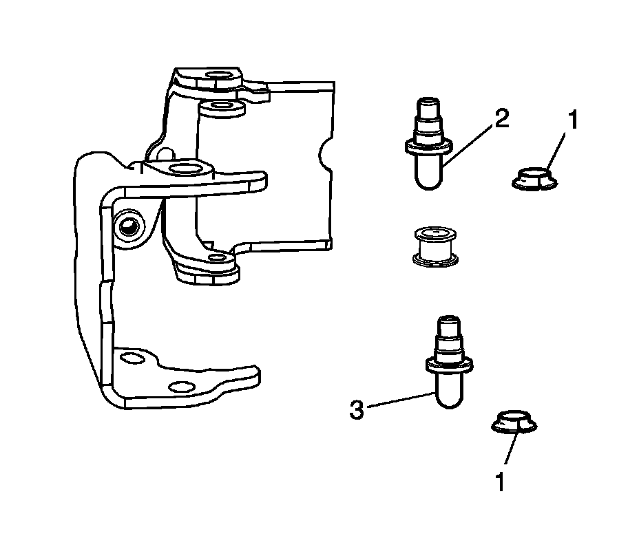 1. Install the hinge pin bushings (1) into the door side hinges.