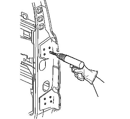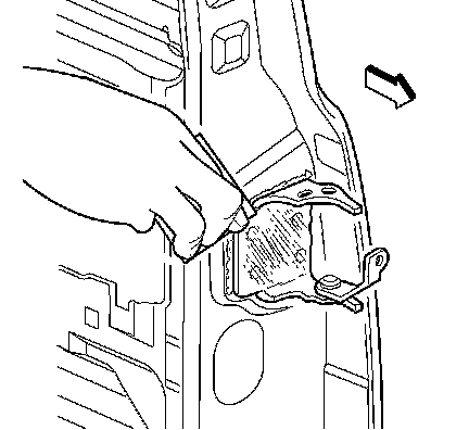 2. Remove any excess sealer surrounding the existing hinge and scribe the location of the hinge on the hinge pillar.