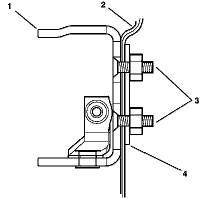 10. Align the hinge (1) and the backing plate (4) with the holes in the door (2) and install the bolts (3).