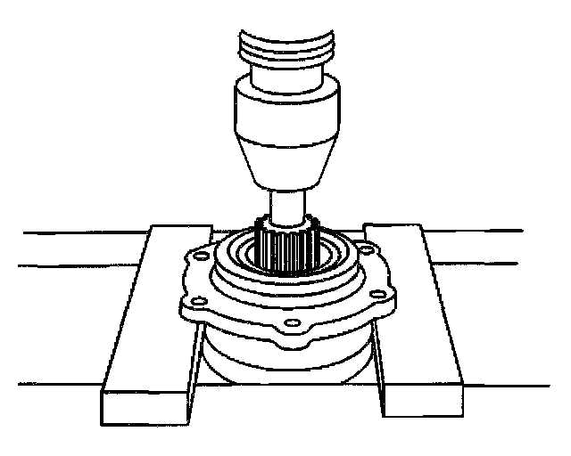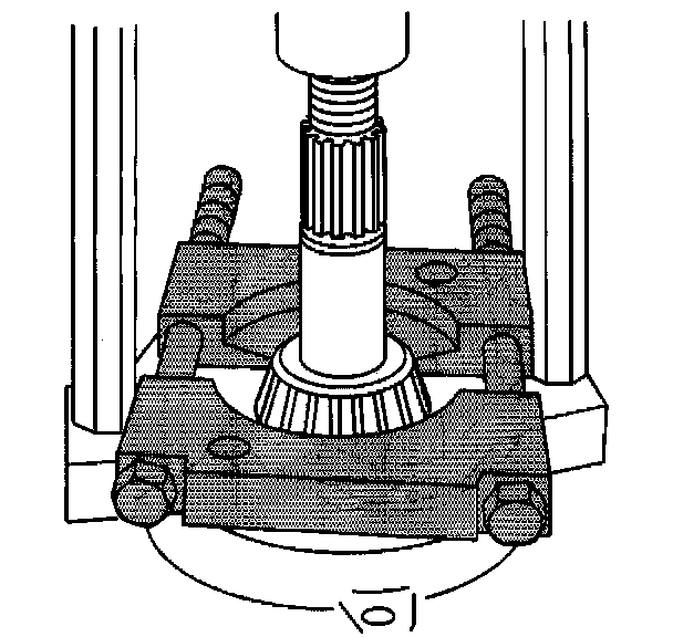 11. Remove the inner pinion bearing from the pinion using the J 22912-01 and a hydraulic press.