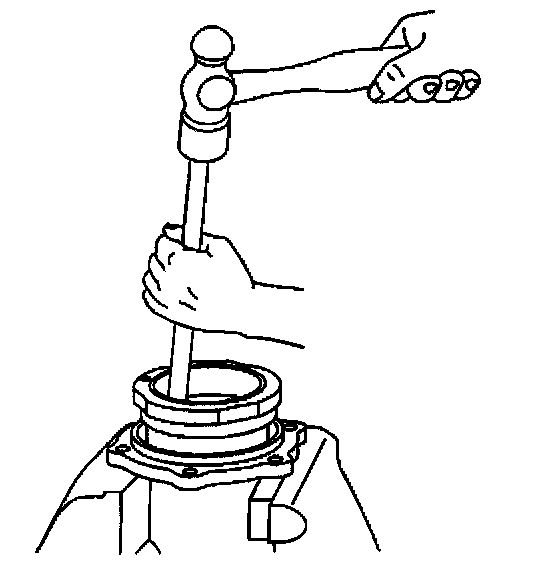 12. Remove the outer pinion beating cup using a hammer and a brass drift in the slots provided.