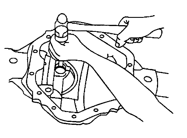 13. Remove the inner pinion bearing cup using a hammer and a brass drift in the slots provided.
