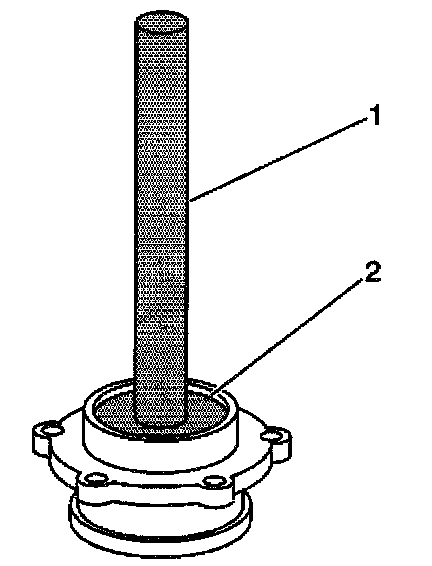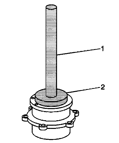 4. Install the outer pinion bearing cup into the pinion gear bearing retainer using the J 8608 (2) and the J 8092 (1).