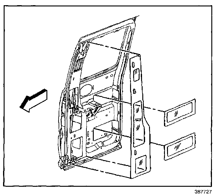 REMOVAL PROCEDUREIMPORTANT: Water deflectors seal the inner panel. Water deflectors prevent water from entering into the body. A strip of adhesive between the deflector and the door secures the deflector.