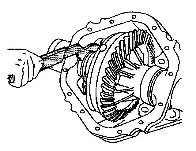 Notice: When removing the differential case from the axle housing, do not damage the cover gasket surface. If the cover gasket surface is damaged, lubricant may leak from the axle and cause premature failure of the axle assembly.