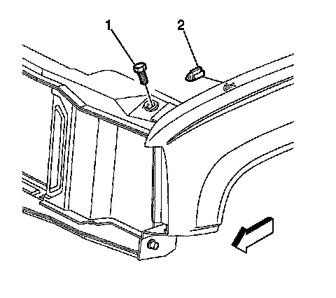 1. Install the side hood bumper by pushing down and sliding the side hood bumper (2) forward.